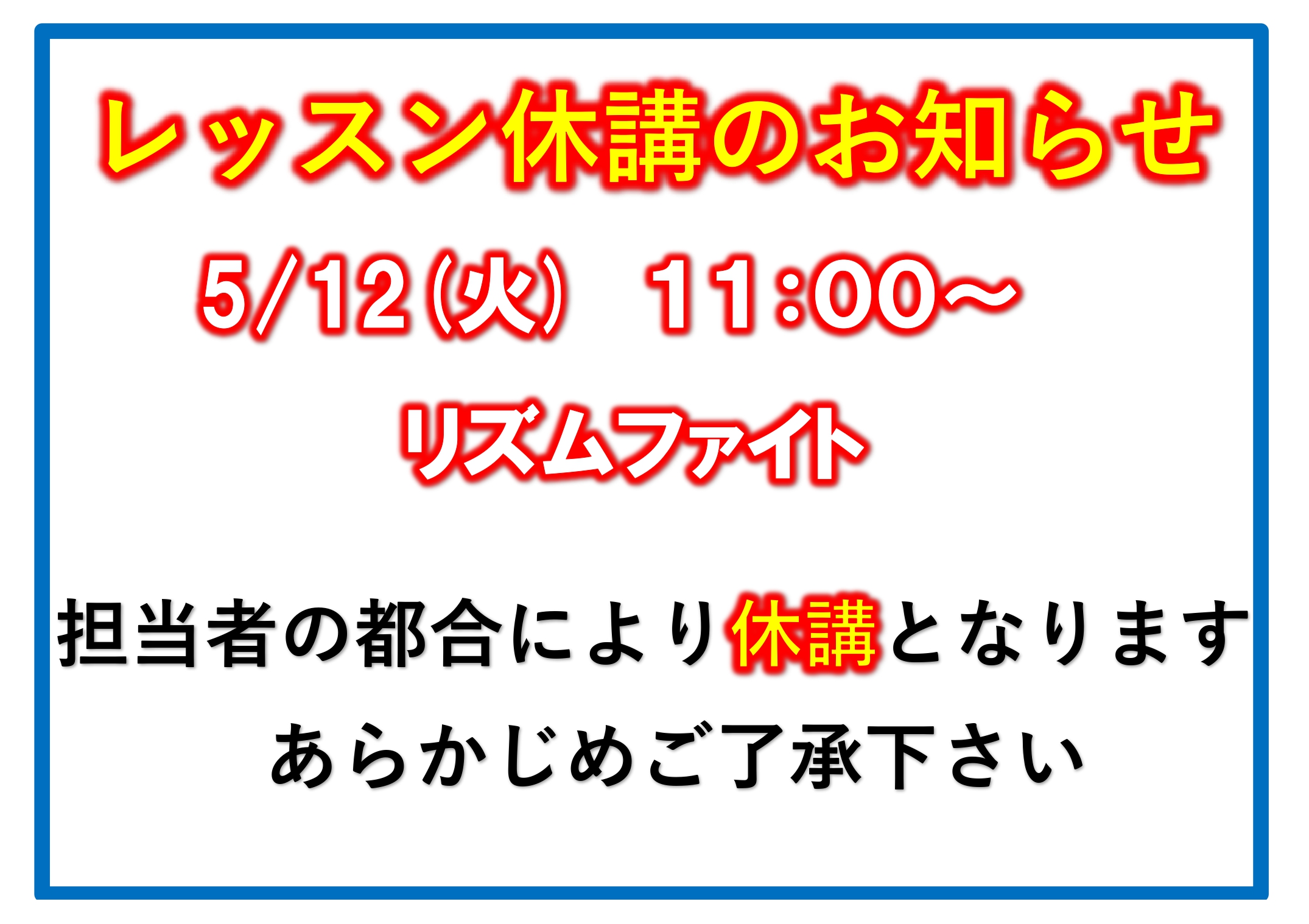下記の通りリズムファイトを休講させていただきます